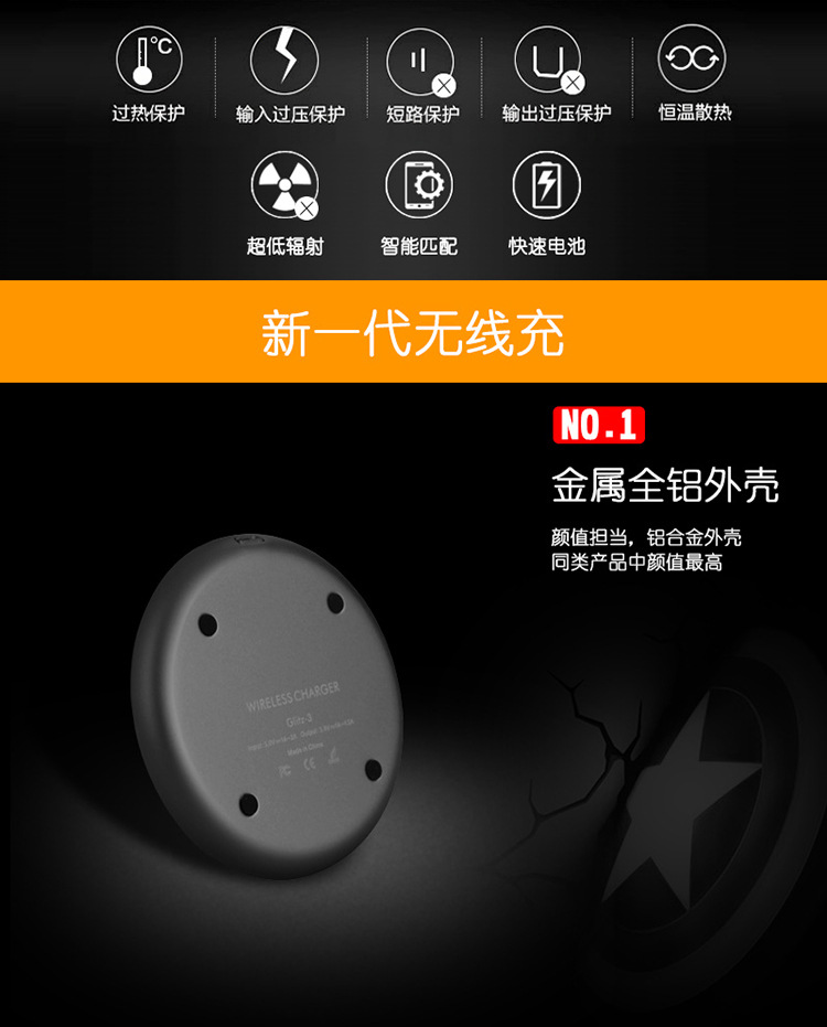 Car wireless charger, Samsung Apple phone, universal QI standard, smart wireless charger