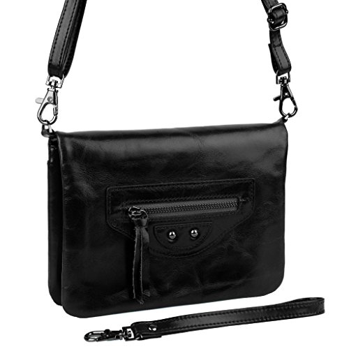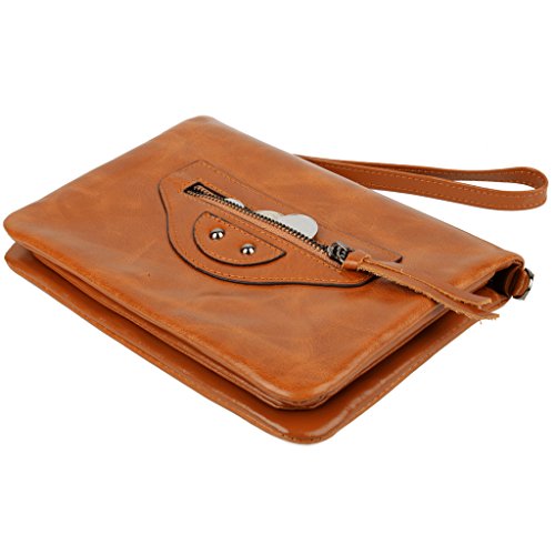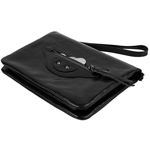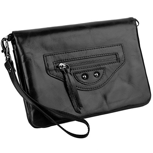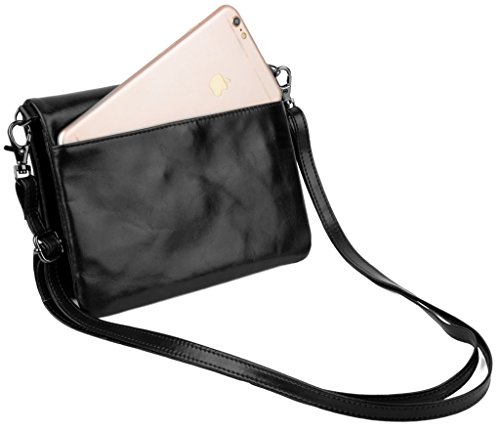 -. Feature : A clutch size purse made from Cowhide Leather(exterior) and PU leather(interior).3 compartments with a PU wrist strap and a PU shoulder chain for multipurpose carry. / Black gunmetal hardware, heavy duty zipper and detailed contrast stitching brightens up the clutch. / 3 compartments and 9 card slots in totall.Has a coin pocket.Also has an back pocket for IPhone 6 Plus,Samsung Galaxy S3/S4/S5/S6 and LG G3/G4 ,Samsung Note 2/3/4/5. / Triple compartments is designed for you to keep your cash, cards ,makeups,and smartphone oraganized well and easy to use. / Dimensions: 6.69"(L) x 1.77"(W) x 4.92"(H),Come with a wrist strap and a shoulder strap(53.14").