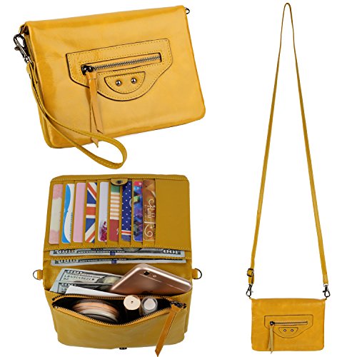 -. Title : YALUXE Women's Multiple Pocket Large Capacity Wristlet Wallet with Shoulder Strap