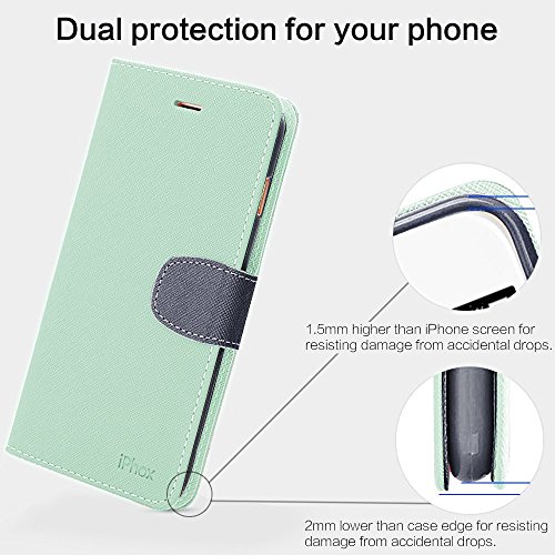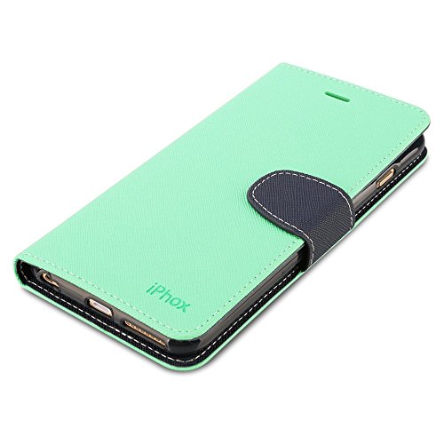 iPhone 6 6S Plus 5.5 Inch Case, iPhox [Cross P][Green/Blue] Wallet Case ID Credit Card Cash Slots PU Leather Case with Stand Flip Cover Protector for Apple iPhone 6 6S Plus 5.5''(2015)--GR/BU