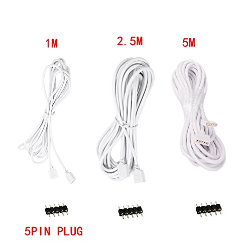 Ltvystore 3Packs 5Pin Plug LED Extension Cable Connect For RGB Strip Light 5050 3528 Color White (1m 2.5m 5m/3pcs pack)