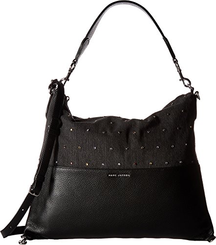 Studio : Marc Jacobs Publisher : Marc Jacobs Product Description A Marc Jacobs tote with a structured handle in back, rendered in a mix of pebbled leather and crystal-studded denim. A spring-lock gathers the base. Top zip and lined, 3-pocket interior. 2 optional shoulder straps. Dust bag included. 0