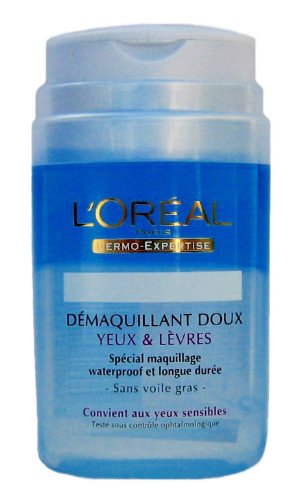 Gentle Make-Up Remover for Eyes & Lips effectively removes waterproof and long-lasting make-up leaving no greasy film around the eyes. Its refreshing and gentle formula is suitable for sensitive eyes and contact lens wearers. L'Oréal Paris Makeup Remover for Eyes and Lips contains a non-irritating, fragrance-free formula to gently and effectively remove waterproof eye make-up and long lasting lipstick. The dual action formula contains oils to dissolve make-up and a lotion to remove traces of make-up and refresh the skin. 125 ml.