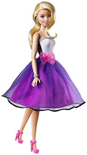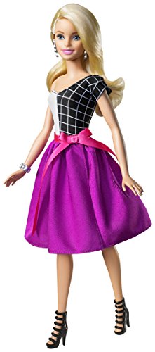 With this pack of mix-and-match pieces, the fashion fun and storytelling possibilities are endless! Barbie doll comes with 10 versatile pieces that can be combined in so many different ways -- you can create more than 20 different looks! Barbie doll wears a graphic top and beautiful skirt that doubles as a cape, with amazing accessories that include one pair of fabulous shoes, a bracelet and a pair of dazzling earrings. Have something different in mind? Then switch up her outfit. She comes with additional clothing options, such as a trendy pair of "denim" pants, a fabulous dress with sparkle and a sheer overskirt. Each pack also includes a fancy bow, trendy ruffle, unique bag and a second pair of shoes. Go from day to night, casual to glam. Collect both sets for even more mix-and-match fashion fun. Set includes Barbie doll with 10 fashion pieces that include a reversible top, skirt, one pair of pants, a skirt/cape, one dress, one ruffle, one bow, one bracelet, one purse and two pairs of shoes. Each sold separately, subject to availability. Doll cannot stand alone. Colors and decorations may vary.Feature