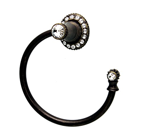 Carpe Diem Hardware 1832-3C Cache Antique Brass Cache II Towel Ring Right {Small Escutcheon} with Swarovski Crystals
