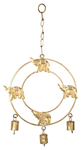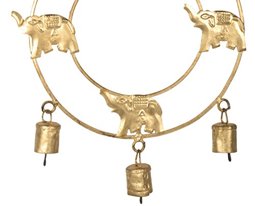 SAAGA Antique Gold Cast Iron 4 Elephants Hanging with Bells / Handmade : 9x10.5 inches (LxB) Hanging Length :16 inches