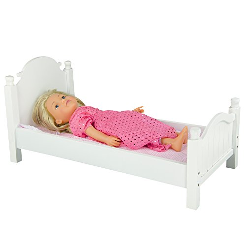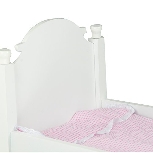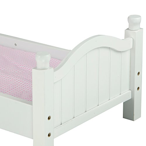 Includes Doll Bedding Set of mattress and attached pillow, This quality bed with turned wood posts is perfect of your doll & teddy bear collection fits American Girl Dolls, Madame Alexander, Sophia's Dolls & More!