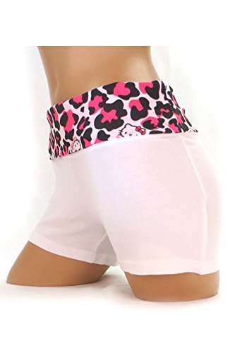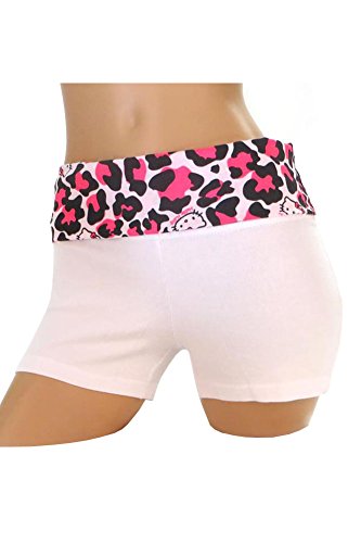 Hello Kitty Faced Leopard White Cotton Yoga Shorts (L)