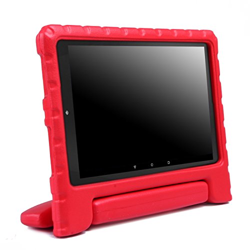 -. Feature : Safe, non-toxic, dense EVA rubber foam case cover is made from the same shock-absorbing material in athletic shoes and equipment / Red frame features thick corner protection to guard against drops and accidents | Ideal cover for children / Multi-function handle is designed to carry in-hand and can rotate so the 5th generation tablet can stand hands free / Case edge extends beyond the screen to ensure the safety of the display in the event of a drop / Port and feature cutouts are designed specifically for the 2015 Amazon Fire HD 8 tablet computer