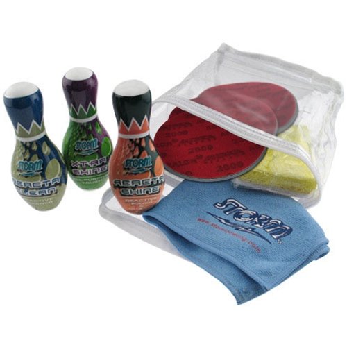 Studio : Storm Bowling Products Publisher : Storm Bowling Products Binding : Misc. Product Description Storm Surface Management Professional Kit Includes: (1) Microfiber Towel (3) Abralon Pads (500, 1000, and 2000 grits) (1) Sponge Applicator (1) 4 oz XTRA-SHINE All Purpose Polish (1) 4 oz REACTA-CLEAN Reactive Cleaner (1) 4 oz REACTA-SHINE Reactive Polish and Cleaner (1) Zip-up clear carrying case 0