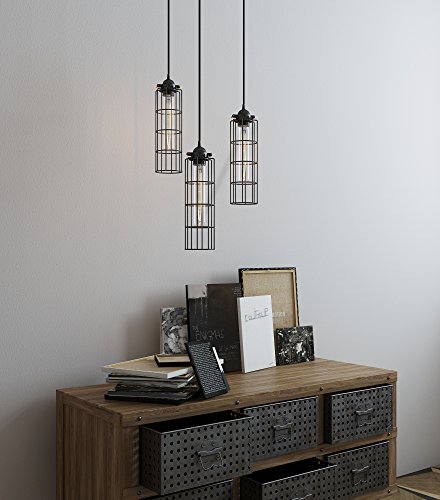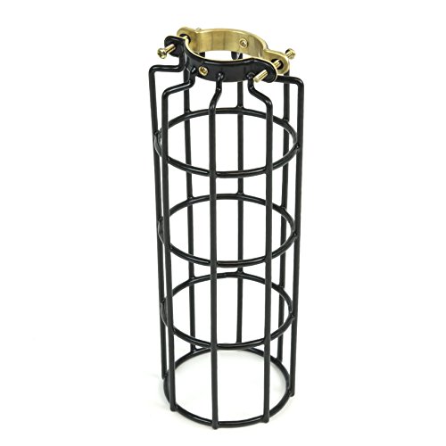 Set of 2 Industrial Vintage Style Metal Wire Cylinder Cage for Pendant Style Lamps ,10 Inch Long, Black