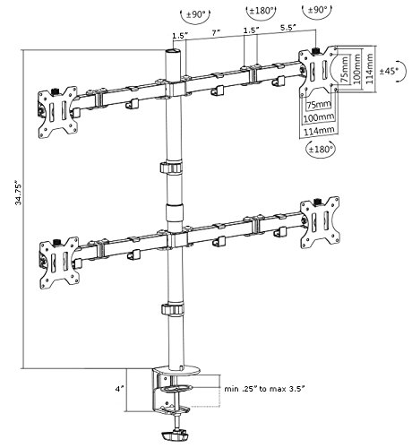 -. Brand : VIVO -. Label : VIVO -. Manufacturer : VIVO -. MPN : STAND-V004_4F -. PartNumber : STAND-V004_4F -. ProductGroup : Home Improvement -. ProductTypeName : HOME_ORGANIZERS_AND_STORAGE -. Publisher : VIVO -. Studio : VIVO -. Title : VIVO Quad LCD Monitor Desk Mount Stand Heavy Duty Fully Adjustable fits 4 /Four Screens up to 27"