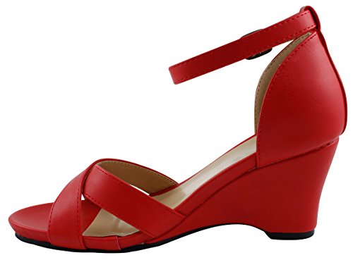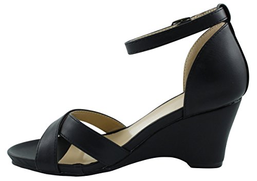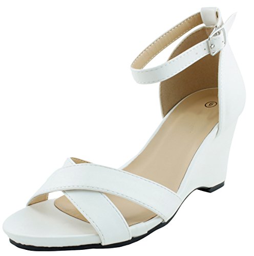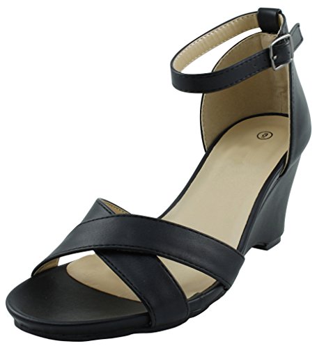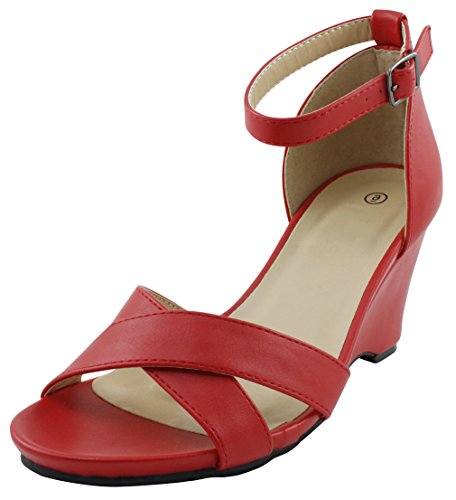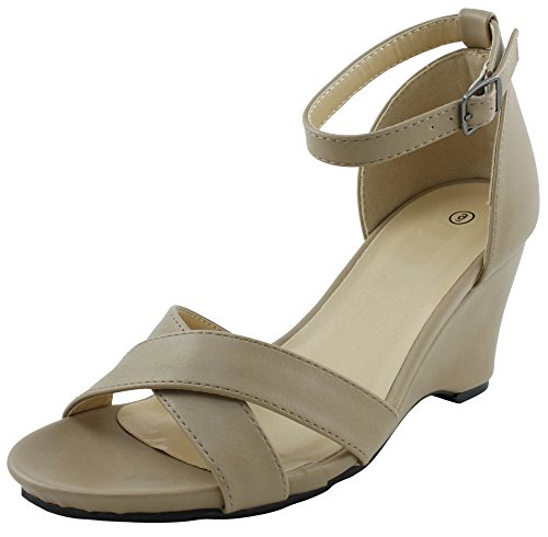 Product DescriptionThis wedge sandal from Cambridge Select features crossover vamp straps, adjustable buckled ankle strap, platform sole, and wedge heel. Imported.0