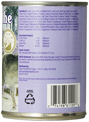 -. Binding : Misc. -. Brand : Taste of the Wild -. EAN : 0074198611188 -. Feature : Sierra mountain formula / 12 - 13.2oz cans per pack / Grain-free formula -. Label : Phillips Feed & Pet Supply -. LegalDisclaimer : Must be at least 18 & over to purchase. Items only ships within United States. -. Manufacturer : Phillips Feed & Pet Supply -. Model : 418650 -. MPN : 418650 -. NumberOfItems : 1 -. PackageQuantity : 1 -. PartNumber : 418650 -. ProductGroup : Pet Products -. ProductTypeName : PET_SUPPLIES -. Publisher : Phillips Feed & Pet Supply -. ReleaseDate : 2013-08-14 -. Size : 13.2-oz, case of 12 -. Studio : Phillips Feed & Pet Supply -. Title : DIAMOND PET FOODS 418650 12-Pack Tow Sierra Mountain Can for Dogs, 13.2-Ounce -. UPC : 074198611188