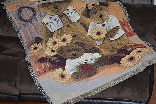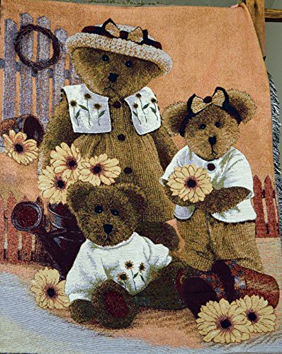 Tache 50 X 60 Inch Teddy Bear's Sunflower Farm Decorative Woven Tapestry Throw Blanket