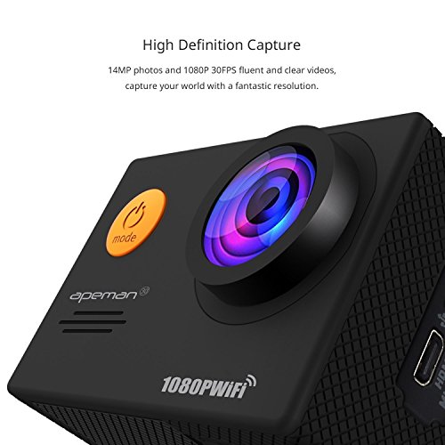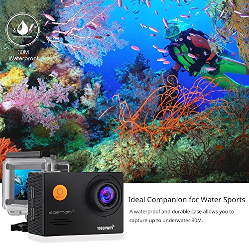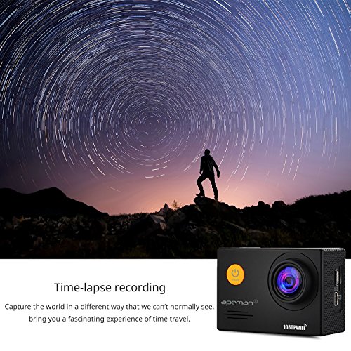 APEMAN Action Camera WiFi 14MP 1080P FHD Sports Camera with 2.0 Inch LCD Display & 170°Ultra Wide-Angle Lens - 2 Rechargeable 1050mAh Batteries & Portable Package Including Full Accessories Kits