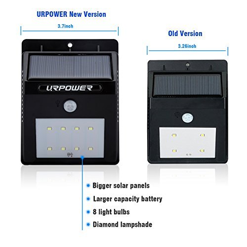 URPOWER Solar Lights 8 LED Wireless Waterproof Motion Sensor Outdoor Light for Patio, Deck, Yard, Garden with Motion Activated Auto On/Off (4-Pack)