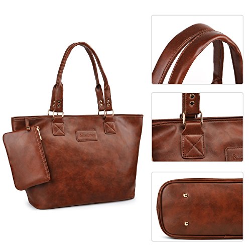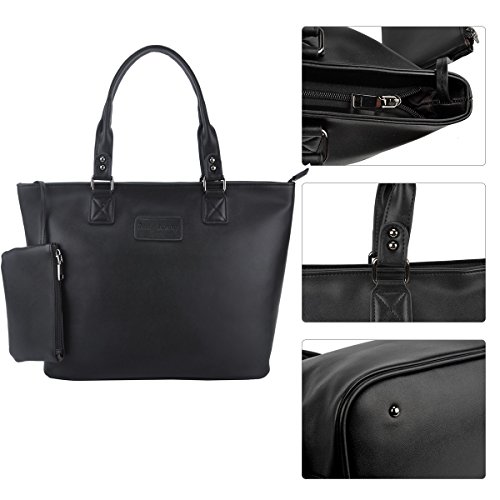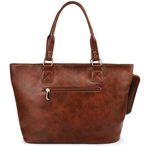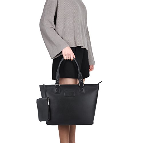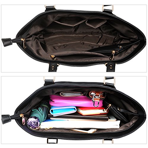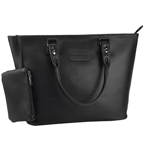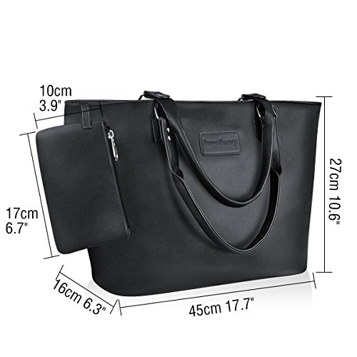 -. Feature : WOMEN TOTE HANDBAGS DIMENSIONS(LxWxH):17.7"L*10.6"W*6.3"H / WITH SMALL WRIST BAG:The handbag including a small zipper wrist bag with hang buckle. / INSIDE OUTSIDE POCKETS:One main large capacity zipper pocket fit up to laptops,books,iPad.three small inside pockets for cellphone,keys,one zipper pocket on back. / CLASSIC SIMPLE DESIGN:Made by high quality PU leather and smooth metal zippers,suitable for use as a handbag,work school tote bag,casual shoulder bag / COMFORTABLE HAND STRAP:Soft handbags strap with metal components fixed is more comfortable and durable,it is easy to carry large enough.