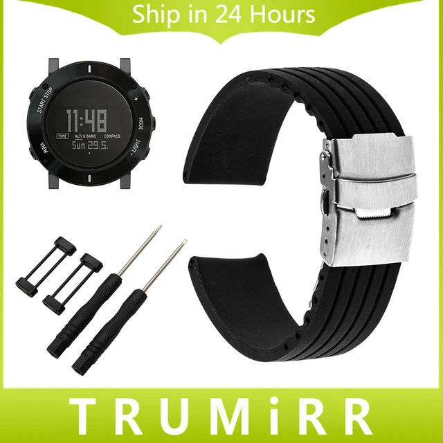 | [해외]24 미리메터 실리콘 손목 안전 버클 스트랩 suunto 코어 스마트 시계 밴드 손목 벨트 고무 팔찌 블랙 + 어댑터 + 도구 |