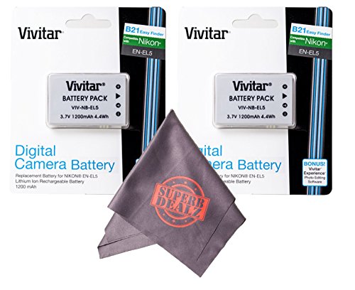 Bundle includes: 2 x EN-EL5 batteries and Microfiber Cleaning Cloth