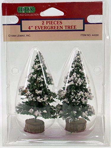 1994 Lemax 4" Evergreen Tree with Snow & Wood Round Bases Item # 44086