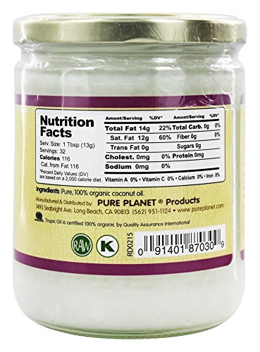 -. Binding : Misc. -. Brand : Pure Planet -. EAN : 0091401870309 -. Feature : For centuries, oils high in naturally saturated fats have promoted the exceptional health of Philippine island dwellers / Pure Planet -. IsAdultProduct : 0 -. Label : Pure Planet -. LegalDisclaimer : Unless otherwise noted, this item has not been evaluated by the United States Food and Drug Administration. It is not approved to diagnose, treat, cure or prevent disease. -. Manufacturer : Pure Planet -. Model : 091401870309 -. MPN : 091401870309 -. NumberOfItems : 1 -. PackageQuantity : 1 -. PartNumber : 091401870309 -. ProductGroup : Health and Beauty -. ProductTypeName : GROCERY -. Publisher : Pure Planet -. Size : 16 -. Studio : Pure Planet -. Title : Pure Planet Tropic Oil Organic Coconut Oil -- 16 fl oz -. UPC : 091401870309