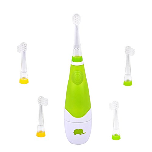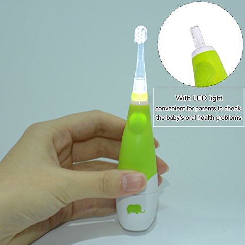 Baby Electric Toothbrush,Ckeyin Latest Style Battery Operated Waterproof Sonic Electric Toothbrush With LED Light +[5x Replaceable Brush Heads],Perfect for Children Toddler 0-4 Years Old