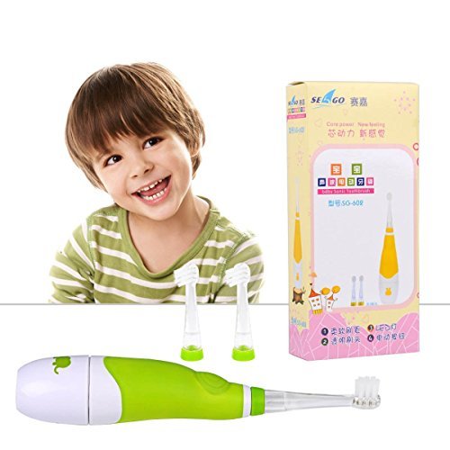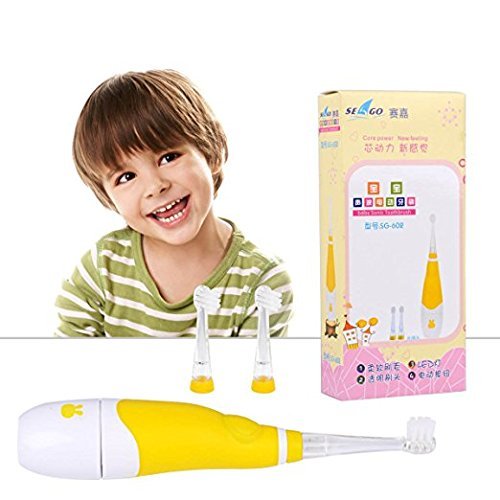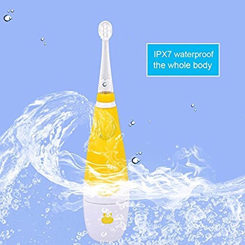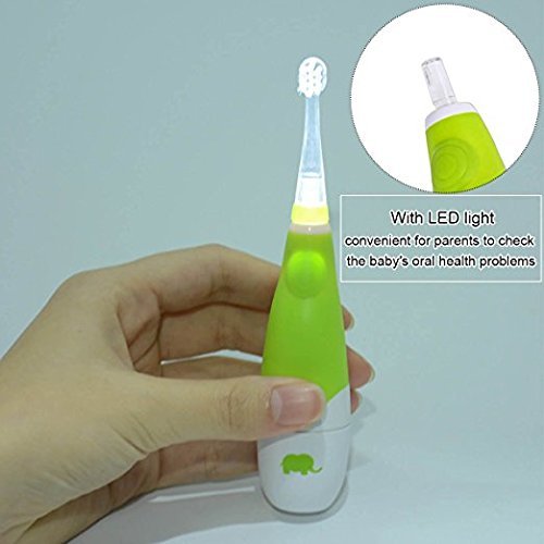 Baby Electric Toothbrush,Ckeyin Latest Style Battery Operated Waterproof Sonic Electric Toothbrush With LED Light +[3x Replaceable Brush Heads],Perfect for Children Toddler 0-4 Years Old
