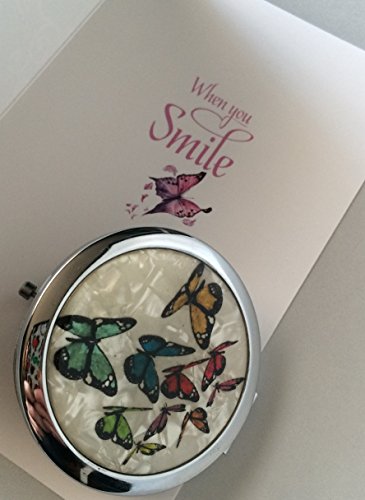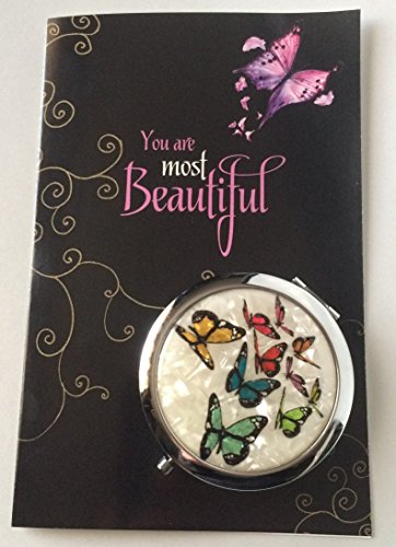 Smiling Wisdom - Girls Butterfly Gift Set - Butterflies Cosmetic Compact Mirror - You are Beautiful Greeting Card - Great Inspirational Gift for Girl, Tween, Teen - Multicolored
