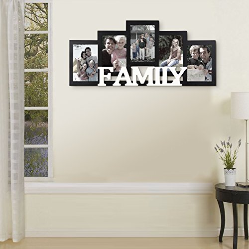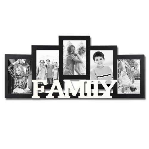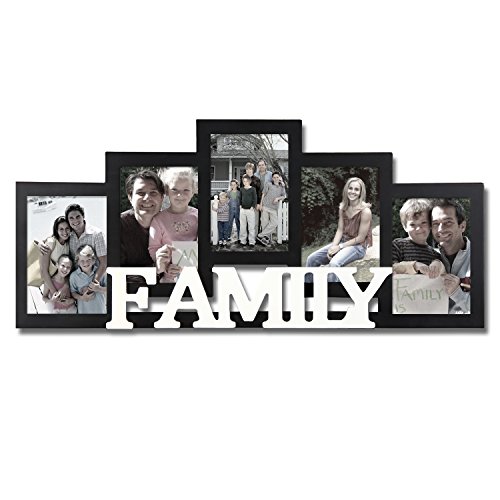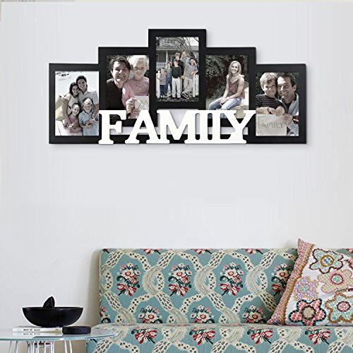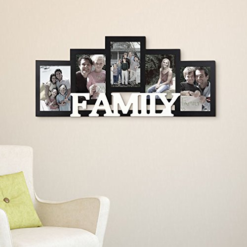 -. Title : Adeco Decorative Black and White Wood ''Family'' Wall Hanging Picture Photo Frame, 5 Openings, 4x6''