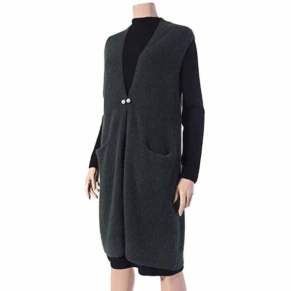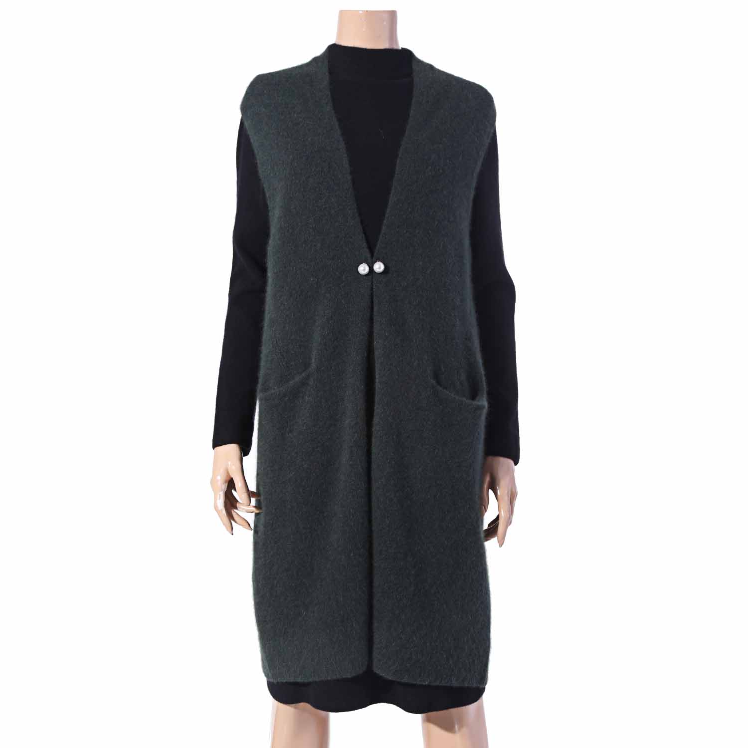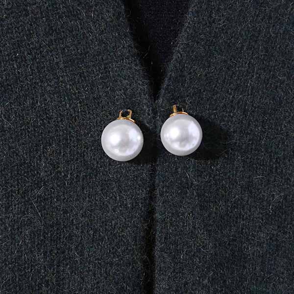 진주 장식과 여유있는 핏이 세련되어 보이는  라쿤 니트 베스트.