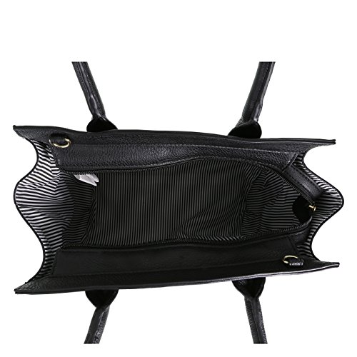 For all those who love the Lana Small Crossbody but just need additional space then the Women's Lana Large Satchel is meant for you! This designer satchel features a tumbled outer with a front lined pocket and a magnetic snap close with functional side zippers that add to the charm of the Lana. Additional highlights include a pretty lined interior containing three more pockets--one side zippered and two side slip pockets--the satchel secures with a large zipper, dual carrying handles with a 7 1/2" drop, and an optional crossbody strap that extends to almost 45". Measures approximately 11"HX11 1/2"WX4 1/2"D. Manmade materials.Feature