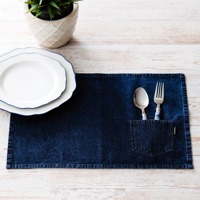 유니섹스인 데님 원단의 런치 매트입니다.
