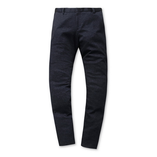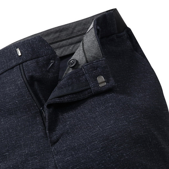 - 은은한 프린트 패턴을 적용한 남성 스트레치 팬츠.