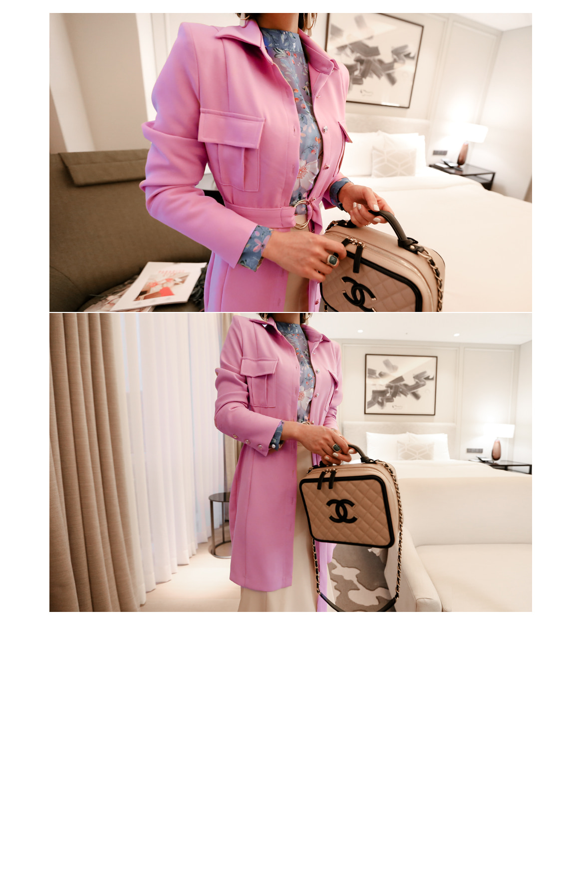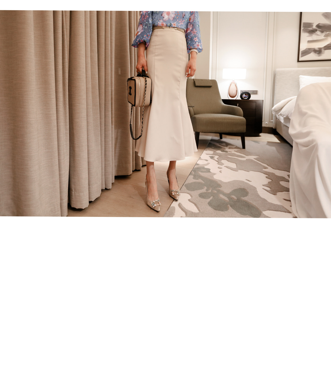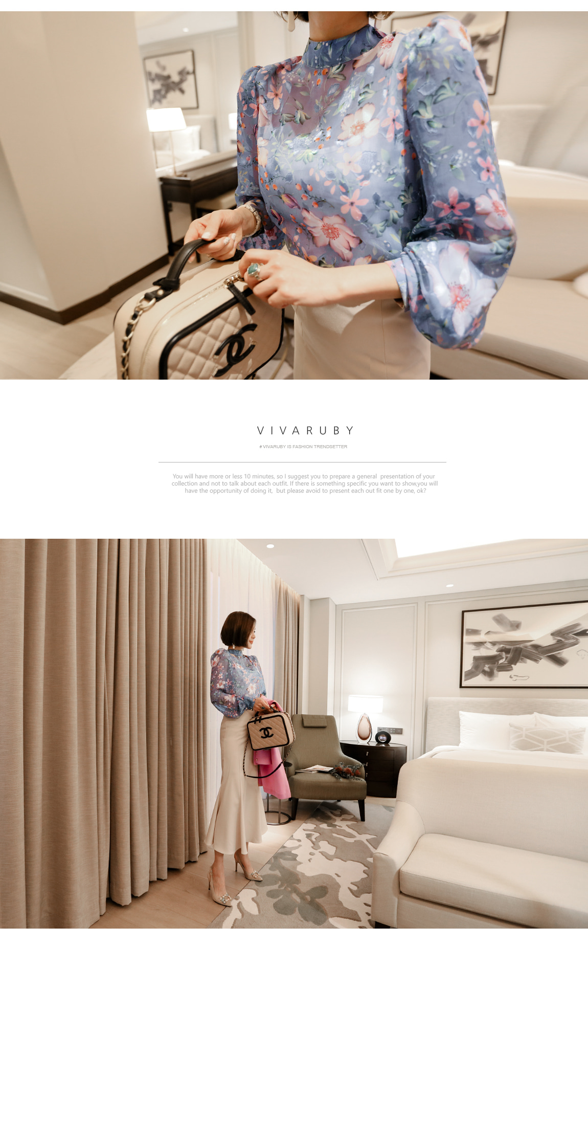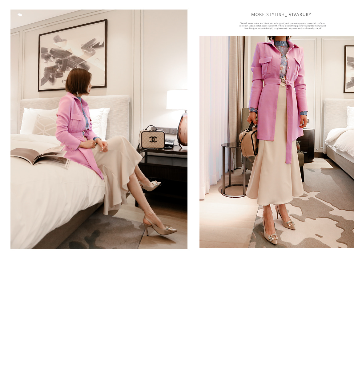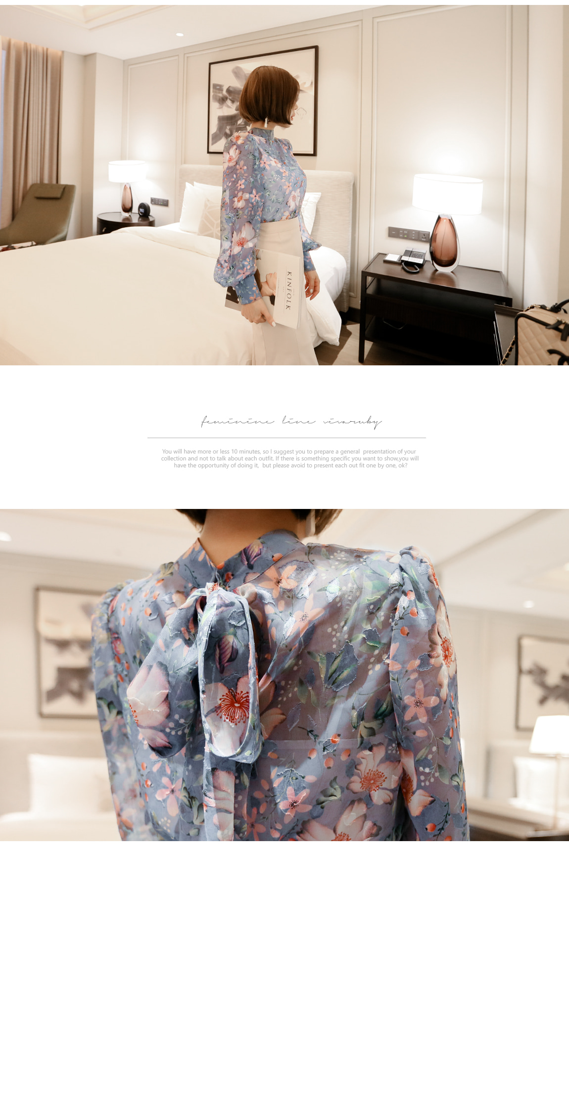 네크라인의 리본 디테일로 페미닌한 포인트를 주었답니다