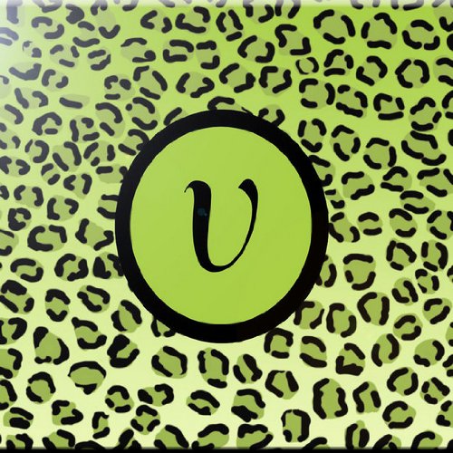 Rikki Knight RK-12intilec-2629 12" X 12" Letter "V" Lime Green Leopard Print Monogrammed Design Ceramic Art Tile