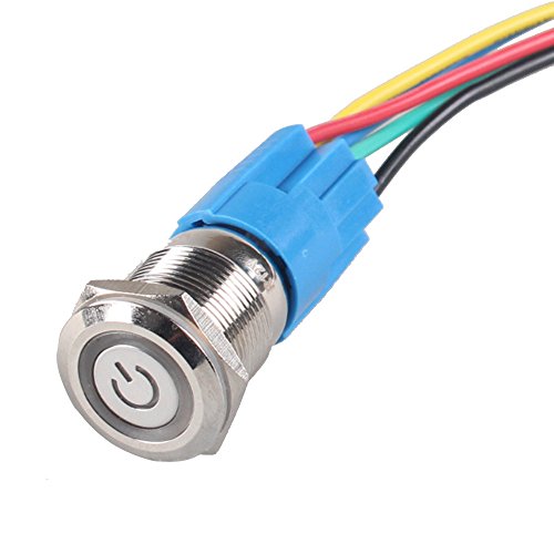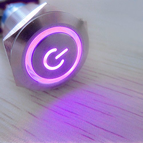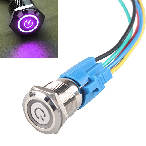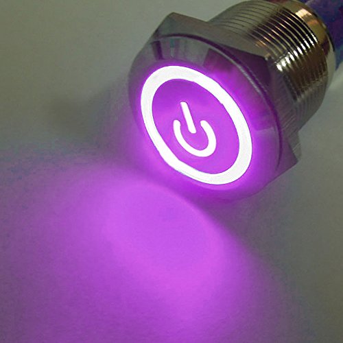 E Support™ 19mm 12V 5A Power Symbol Angel Eye Halo Car Purple LED Light Metal Push Button Toggle Switch Socket Plug Wire