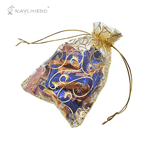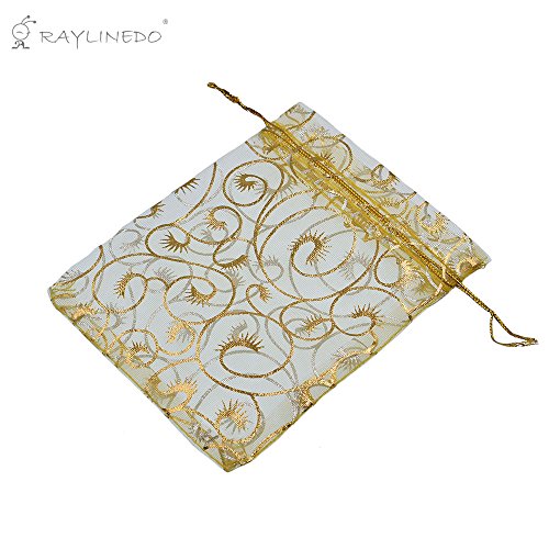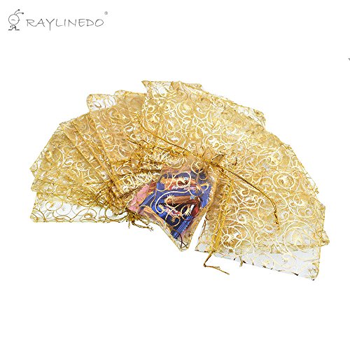 Raylinedo 100PCS 10cm12cm Colorful Bronzing Organza Gift Bags For Wedding Favor Bags Jewelry Candy Pouches Drawstring Wrap Bags - Gold