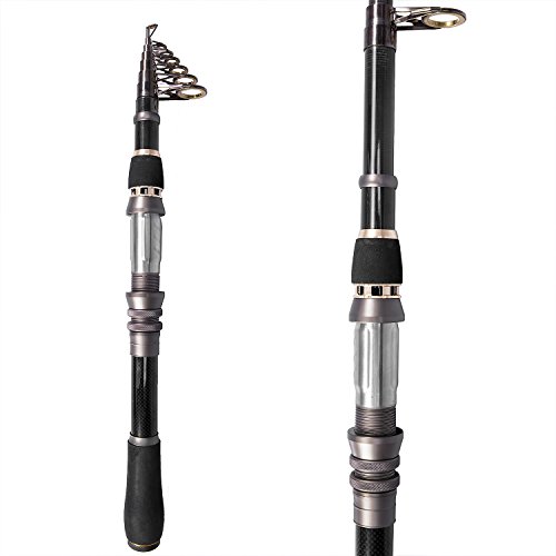 The telescopic fishing rod is portable, and closed length design is convenient carrying around. Power: Medium; Extended Handle.