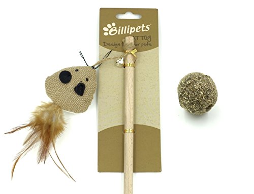 -. Title : Billipets Cat Toys, Set of Natural Wooden Wand Teaser Sisal Fat Mice Cat Toy and 100% Compressed Catnip Cat Toy Ball