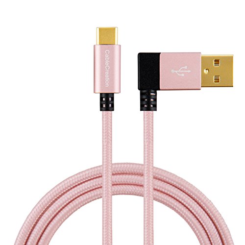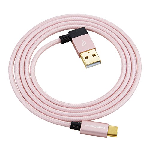 USB Type C Cable, CableCreation 4 Feet Right Angle USB 2.0 A to USB-C Braided Cable for New Macbook(Pro), Google Pixel XL, Nexus 5X/6P, LG G5 & More,1.2M/ Rose Gold Color with Aluminum Case