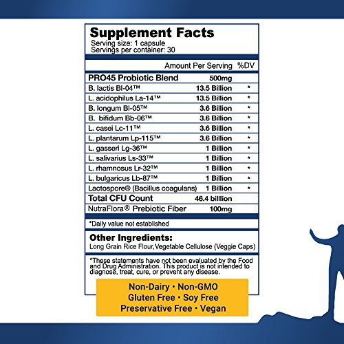 Pro45 was designed to be your go-to gut and digestive system multi-vitamin. Pro45 helps to promote an optimal gut bacteria balance. You get 45 billion live active cultures from 11 clinically studied strains in a special capsule designed to resist stomach acid, helping the live cultures get to the intestinal tract.