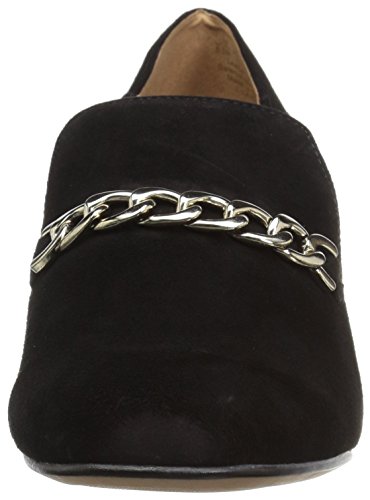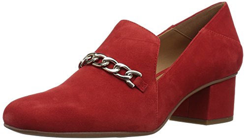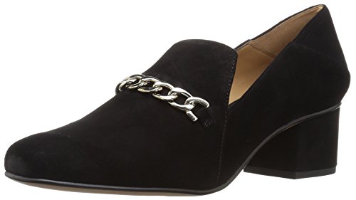 Product DescriptionShow your eye for timeless style with this loafer-inspired pump. Suede upper. Round toe, slip-on fit. Metallic chain link detail. 2 inch block heel.0