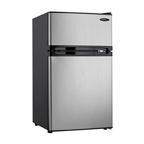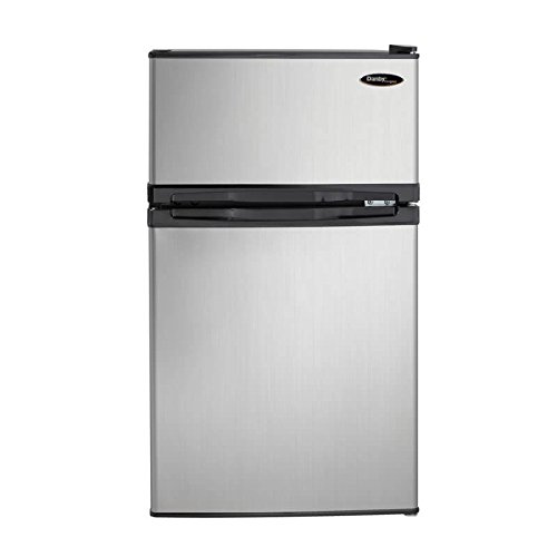 The Danby Designer DCR031B1BSLDD Energy Star 3.1 Cu. Ft. Compact Dual-Door Refrigerator/Freezer, has spotless steel doors that look identical to real stainless steel without the smudging! It has a separate, top-mount freezer with cycle defrost and storage on the freezer door. Perfect for dorm rooms and small offices, this energy efficient unit includes the CanStor beverage dispenser, tall bottle storage, a crisper drawer and plenty of shelf space. With reversible door hinges, integrated door handles and a smooth-back design, this handy refrigerator/freezer will fit almost anywhere. Package Content: compact refrigerator/freezermanualwarranty Operating System Batteries Included Batteries Required Number of Batteries Battery Type Language Assembly RequiredFeature
