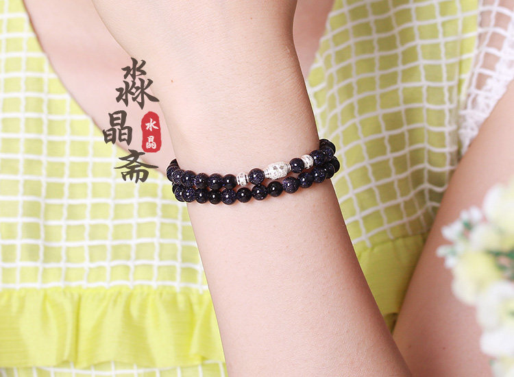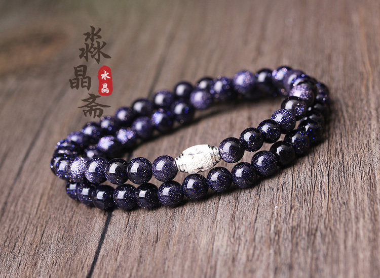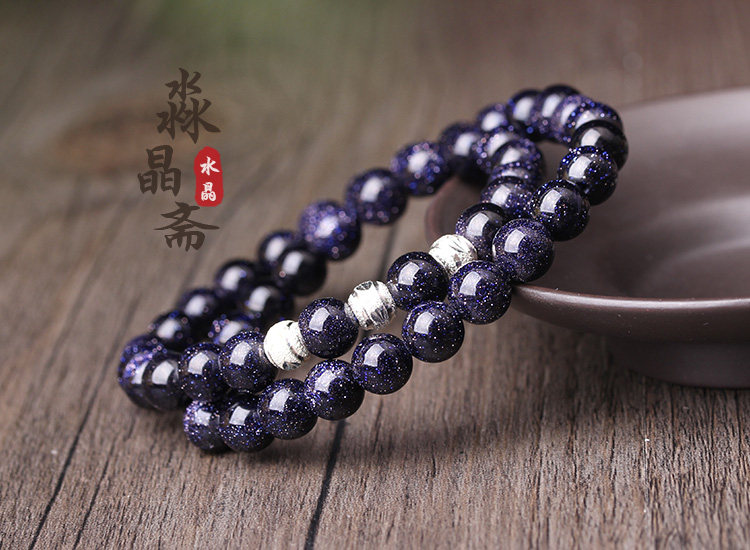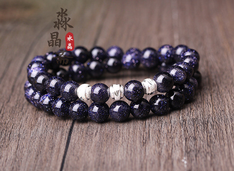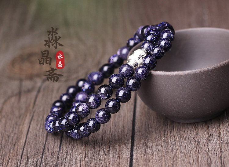 8mm蓝砂石两圈 + 三颗圆转运珠