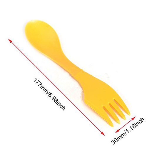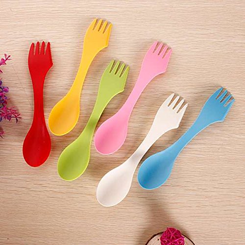 Studio : AC2 Publisher : AC2 Product Description Durable and dishwasher safe. Spoon, fork, knife combo with a serrated edge on side of fork. Heat resistant material - doesn't melt in hot/boiling water. Won't scratch non-stick cookware. The Spork is perfect for your backpack, pla, picnic basket, lunchbox, purse or briefcase. Heat-resistant material does not melt in hot or boiling water. 0