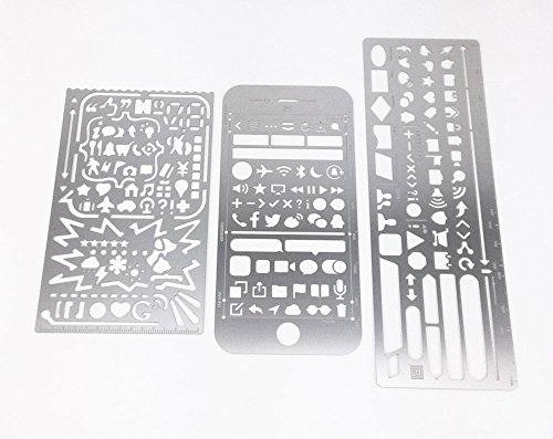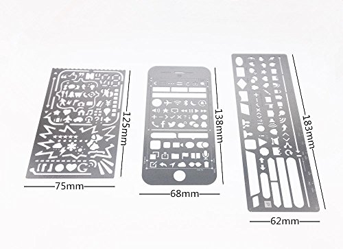 Seven YJ. store Pack of 3 Stainless Steel Stencils Portable Drawing Graffiti Web UI/Number Alphabet Multifunction Template Ruler