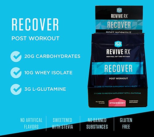 Studio : Pro Form Laboratories Publisher : Pro Form Laboratories Product Description Post workout Recover singles by Revive Rx will be your go to supplement for speedy recovery and muscle regrowth after your daily training regimen. Our specially formulated powdered drink mix provides 20G of fast-absorbing Carbohydrates and 10G of Whey Protein Isolate to deliver critical nutritional support post workout. A 2:1 carb/protein blend helps generate the optimal hormone response while also making the right nutrients available to replenish fuel stores and rebuild lean muscle tissue. Recover also includes 3G of the amino acid L-Glutamine in every serving to support a healthy gut for optimal nutrient absorption. Simple carbs trigger an insulin response that can help initiate muscle rebuilding. They also make key nutrients available to replenish glycogen stores in muscle cells. Fast absorbing protein ensures essential amino acids are available to rebuild muscle tissue broken down during exercise. L-Glutamine is an important amino-acid used by the body in muscle restoration and also helps support immune function and gut health. Push yourself harder with better results with Revive Rx Recover, just click add to cart now! 0