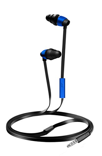 Coby CVE-116-BLU Tangle Free Flat Cable Stereo Earbuds With Mic, Blue
