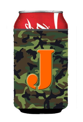 Letter J Initial Monogram - Camo Green Can or Bottle Beverage Insulator Hugger